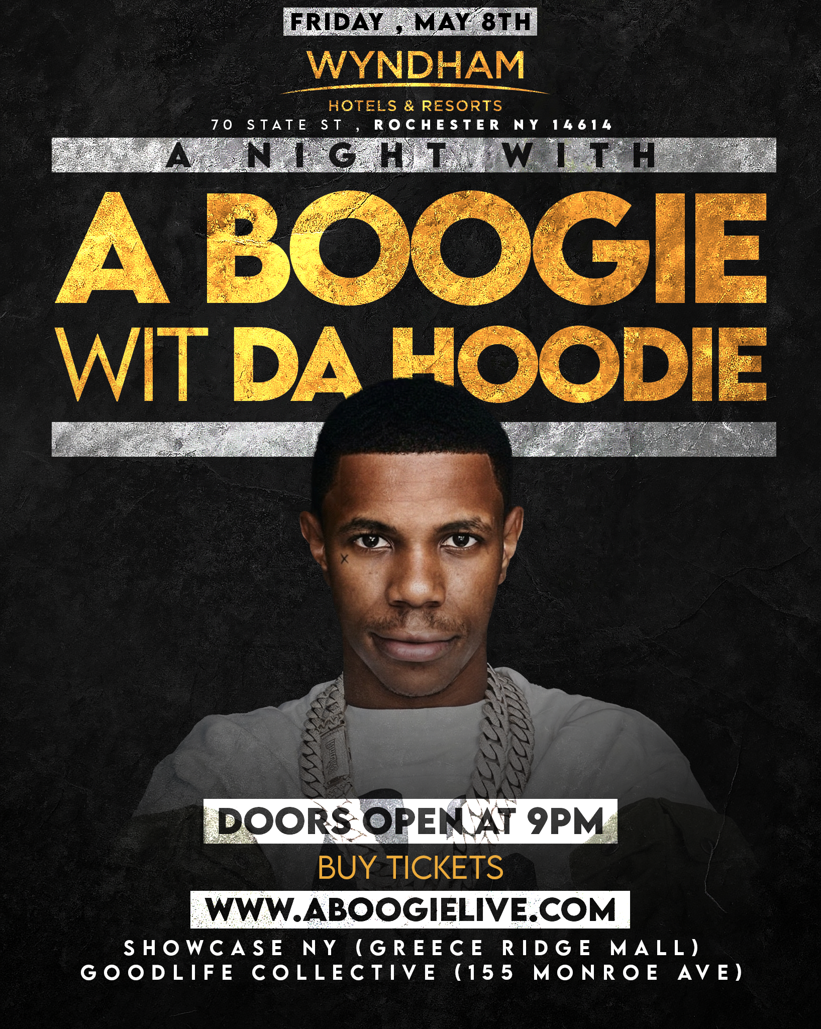 Join us on Friday, May 8th, 2026 for an unforgettable evening with A Boogie wit da Hoodie live at the Wyndham Rochester Downtown.